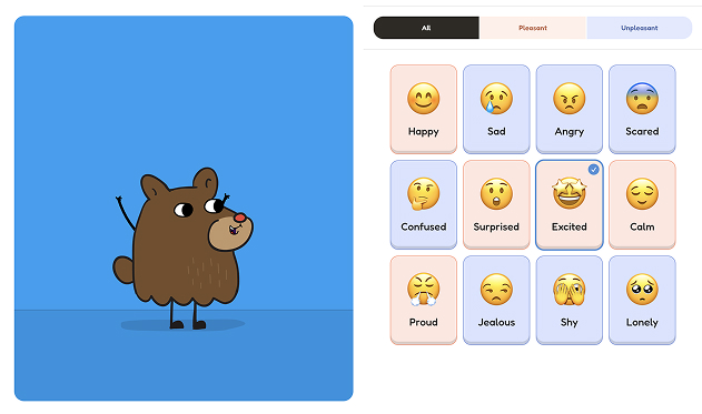 Explore emotions by tapping feeling cards and watching Bear act them out
